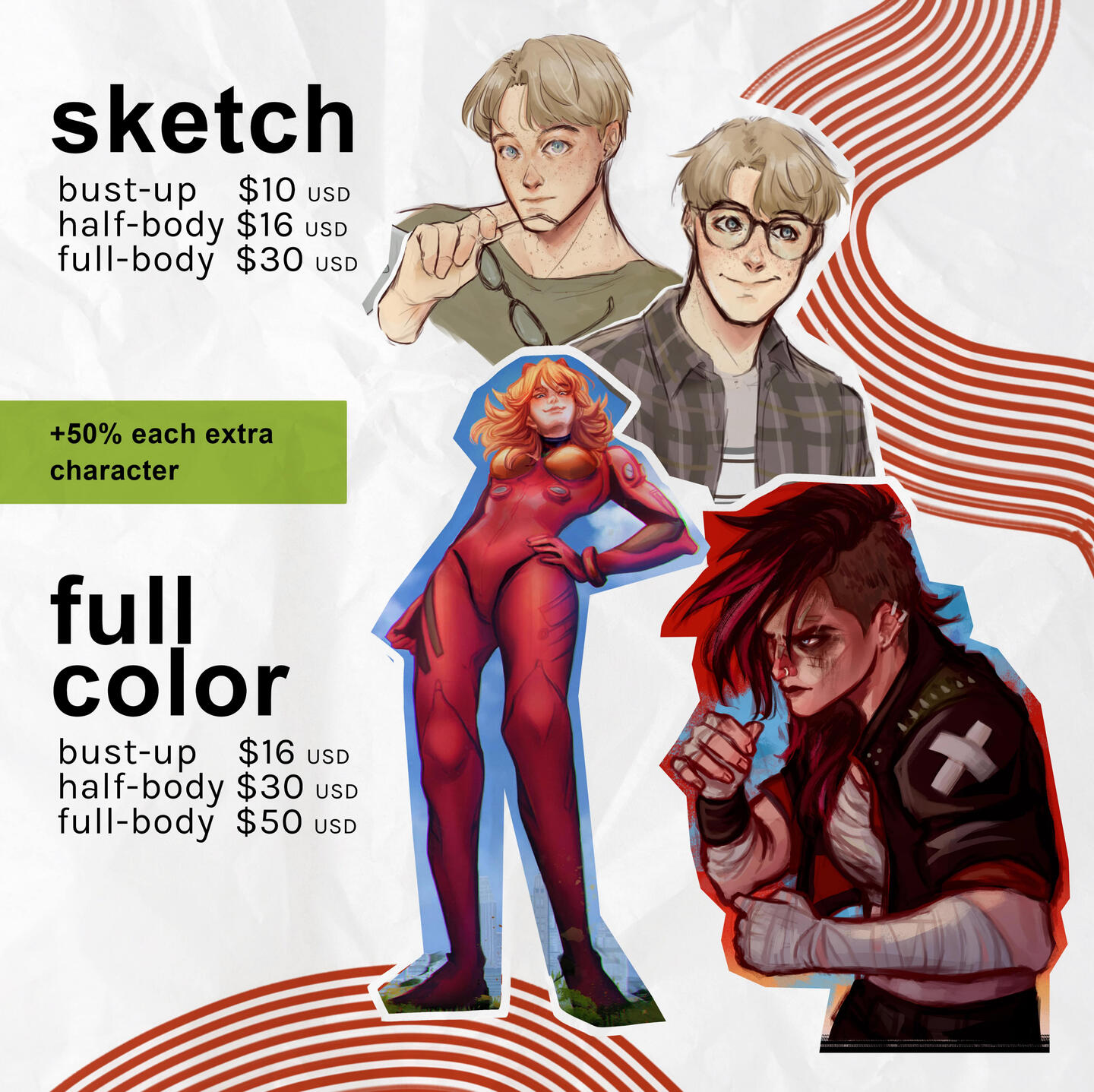 Once we are set on an idea, we can discuss prices. The payment methods I use are PayPal and Ko-fi for people outside of Mexico, otherwise I can also accept bank transfers. 100% payment upfront is preferred, but I also offer the option of 50% upfront and 50% before sending the final image.